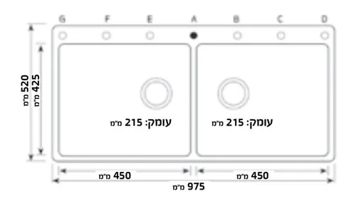 אורך: 52 ס"מ, רוחב: 97.5 ס"מ, עומק הכיור 21.5 ס”מ