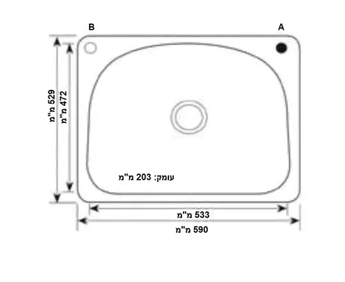 אורך: 52.9 ס"מ, רוחב: 59 ס"מ, עומק הכיור 20.3 ס”מ