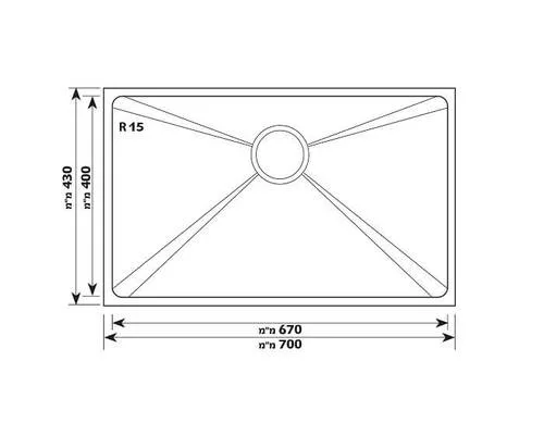 אורך: 43 ס"מ, רוחב: 70 ס"מ,עומק הכיור: 20.3 ס”מ.