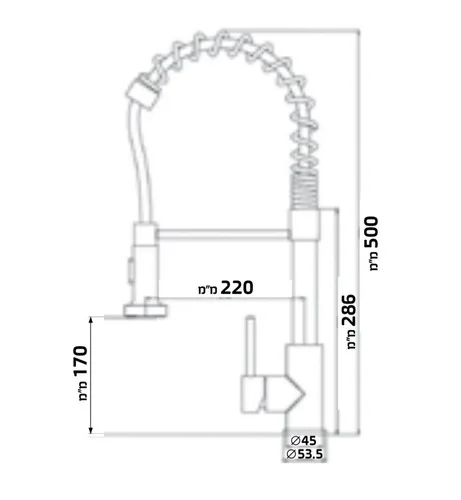ברז מטבח נשלף בעל שני מצבים גבוה תעשייתי מדגם אנדי.
