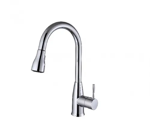 ברז מטבח דגם ג’ונסון, נשלף ובעל שני מצבי זרימה. עיצוב עדין ומעוגל,