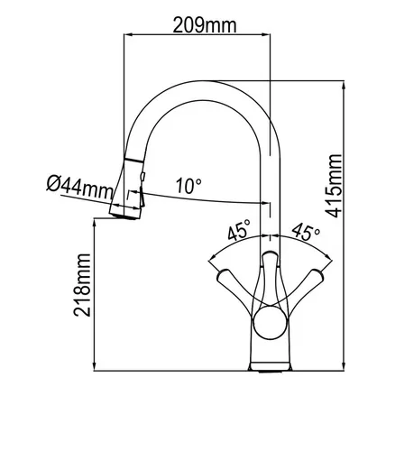 ברז מטבח דגם ביילי בעל עיצוב בקווים עגולים ומזלף בצורת פעמון.