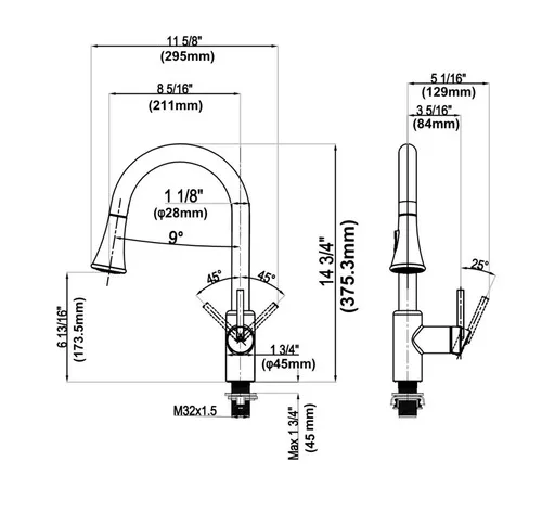 גובה הברז: 375.3 מ"מ.