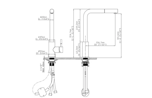 ברז מטבח מיקסר נירוסטה נשלף דגם אל פורם L FORM שחור מט 138701 שוני SHONY