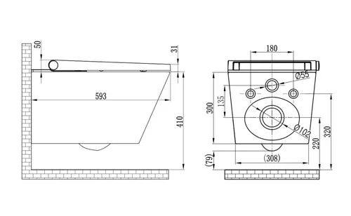 אסלה תלויה עיצוב שטוח נקי ואלגנטי ים מושב אסלה דק בעובי 50 מ"מ בלבד.