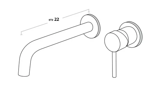 ברז מהקיר עם ידית יד בעיצוב מנימליסטי.