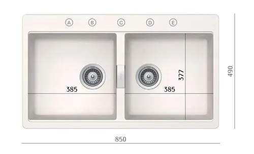 אורך: 49 ס”מ, רוחב: 85 ס"מ, עומק כל כיור 19.5 ס"מ