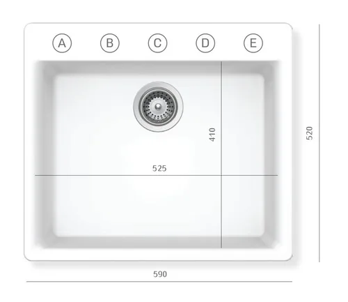 אורך: 52 ס”מ, רוחב: 59 ס"מ, עומק הכיור: 22 ס"מ.