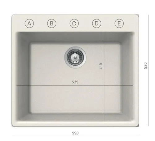 אורך: 52 ס"מ, רוחב: 59 ס"מ, עומק הכיור 22 ס"מ.