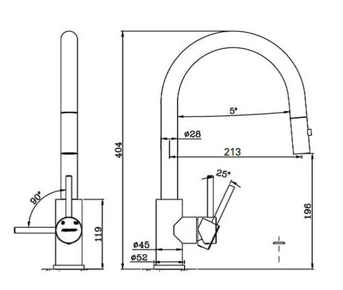 ברז מטבח נשלף מנירוסטה מוברשת 2 מצבי זרימה עם פיה מסתובבת.