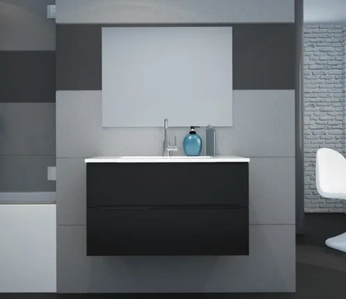 ארון אמבטיה תלוי בעל 2 מגירות וטריקה שקטה.