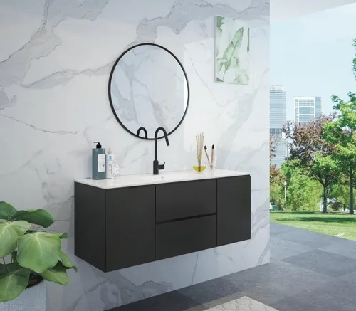 ארון אמבטיה תלוי בעל 2 מגירות +2 דלתות וטריקה שקטה.