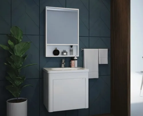 הארון מסופק עם כיור אינטגרלי לבן (כמו בתמונה של הכיור) ומראה עם 2 מדפים.