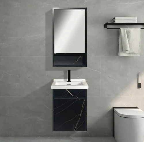 הארון מסופק עם כיור אינטגרלי לבן וארונית מראה נפתחת.