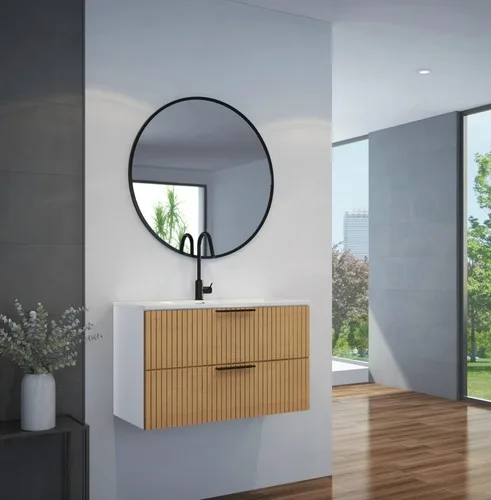 ארון אמבטיה תלוי בעל 2 מגירות וטריקה שקטה.