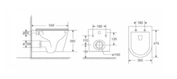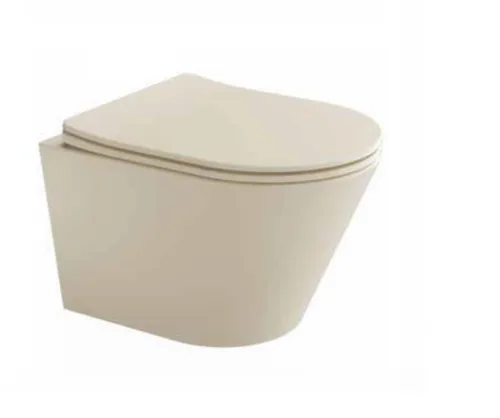 אסלה חרס תלויה בעלת מושב הידראולי ושטיפה היקפית רימלס.מידה: 54/36/36 ס"מ.צבע: פרגמון מט.מקט: TO3MP1