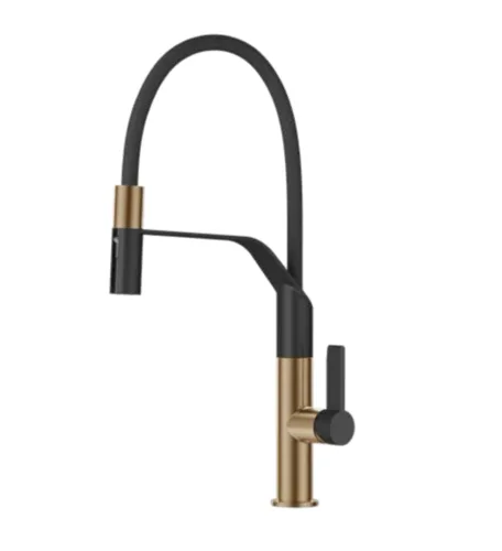 ברז מטבח נשלף בעל 2 מצבי זרימה.ציפוי PVD איכותי, נטול עופרת.צבע: שחור מט בשילוב רוז גולד מט.מקט: 1029RGB