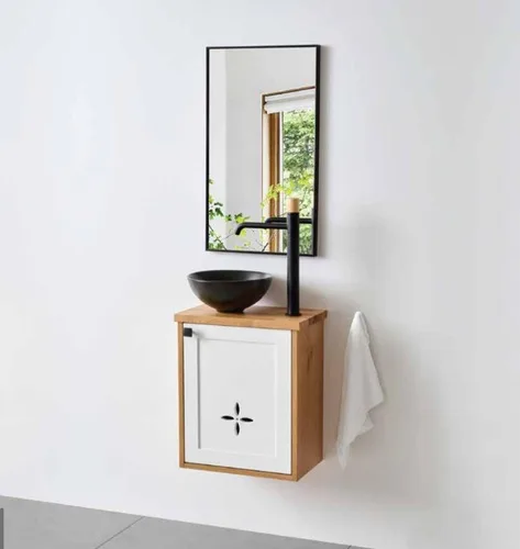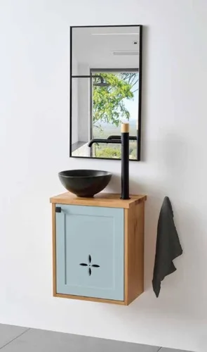 ארון תלוי דגם פמלה - PAMELA עומק 26 ס"מ עם משטח בוצ'ר + כיור בוטיק שחור מט 43 ס"מ סניטק
