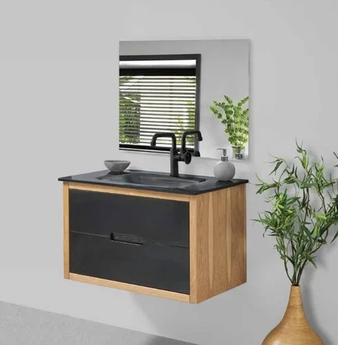 ארון צבוע אפוקסי, בסיס רגלי הארון מעץ, גוף סנדוויץ, חזית MDF ירוק לחדרים רטובים.