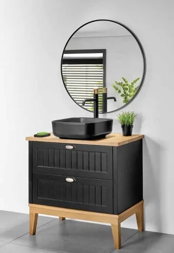 ארון צבוע אפוקסי, בסיס רגלי הארון מעץ,גוף סנדוויץ, חזית MDF ירוק לחדרים רטובים.