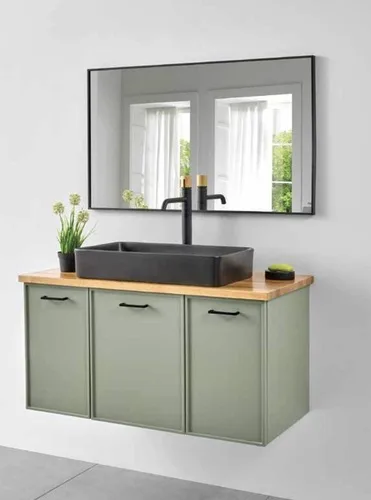 עומק הארון: 36 ס"מ. ארון צבוע אפוקסי, גוף סנדוויץ, חזית MDF ירוק לחדרים רטובים.