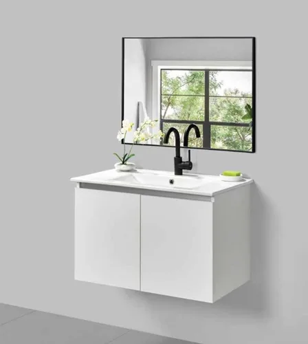 ארון תלוי דגם ויליג' - VILLAGE עומק 47 ס"מ עם כיור סקיני חרס לבן 62 ס"מ סניטק