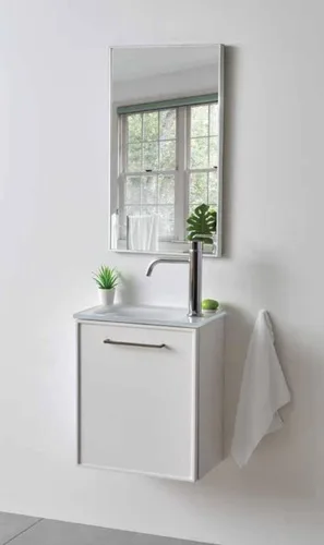 ארון תלוי מידה 43 ס"מ דגם המילטון עם כיור זכוכית אינטגרלי.
