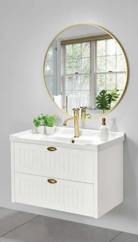 ארון תלוי דגם נירוולי - NIRVALI עומק 47 ס"מ עם כיור סקיני חרס לבן 122 ס"מ סניטק