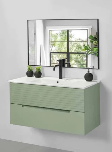 עומק הארון: 47 ס"מ. ארון צבוע אפוקסי, גוף סנדוויץ, חזית MDF ירוק לחדרים רטובים.