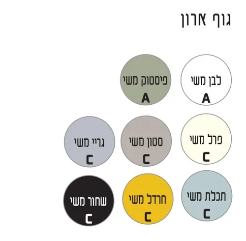 גוף הארון: לבן משי, גריי משי, פרל משי, סטון משי, תכלת משי, פיסטוק משי, חרדל משי, שחור משי.
