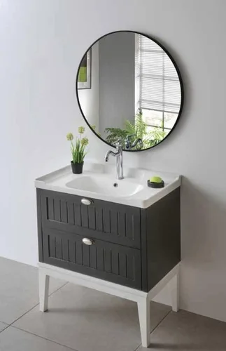 ארון צבוע אפוקסי, בסיס רגלי הארון מעץ, גוף סנדוויץ, חזית MDF ירוק לחדרים רטובים.