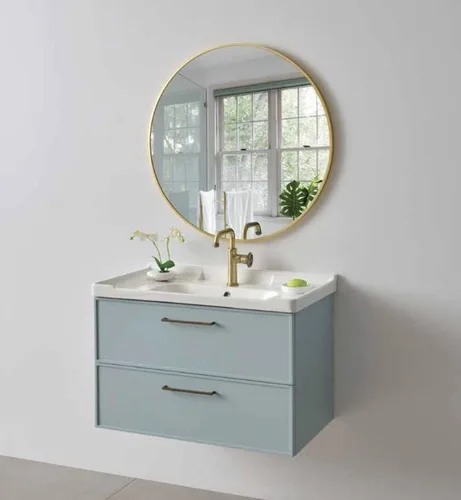 עומק הארון: 40 ס"מ. ארון צבוע אפוקסי, גוף סנדוויץ, חזית MDF ירוק לחדרים רטובים.