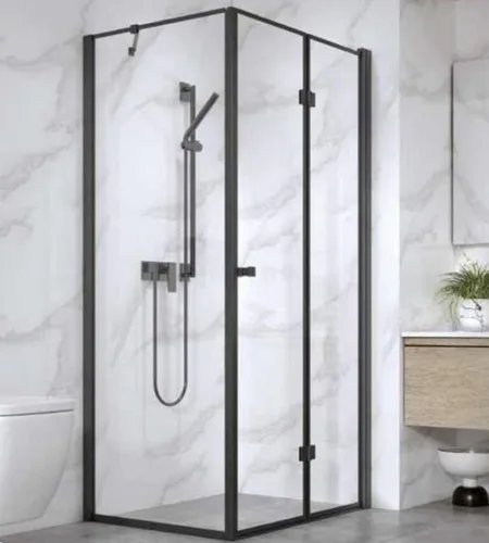 מקלחון פינתי דגם רוקו, דלת הרמוניקה ודופן קבועה.
