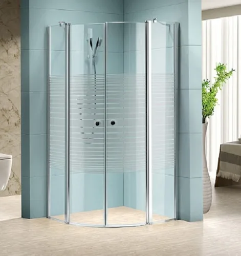 מקלחון מעוגל דגם לורנס. 2 דלתות על ציר נפתחות פנימה והחוצה + 2 דפנות קבועות.