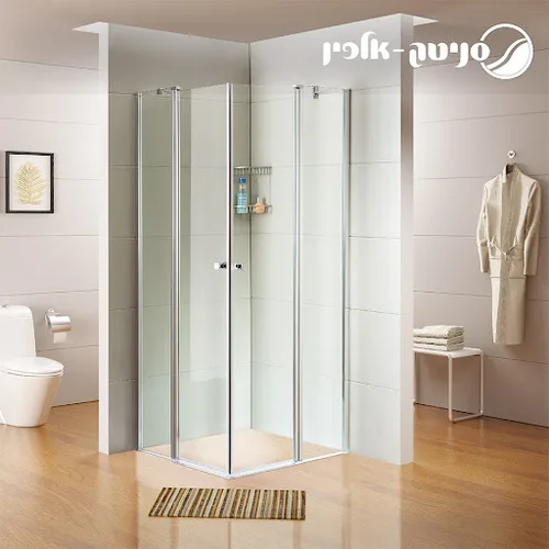 מקלחון פינתי דגם אלפין. 2 דלתות על ציר נפתחות פנימה והחוצה + 2 דפנות קבועות.