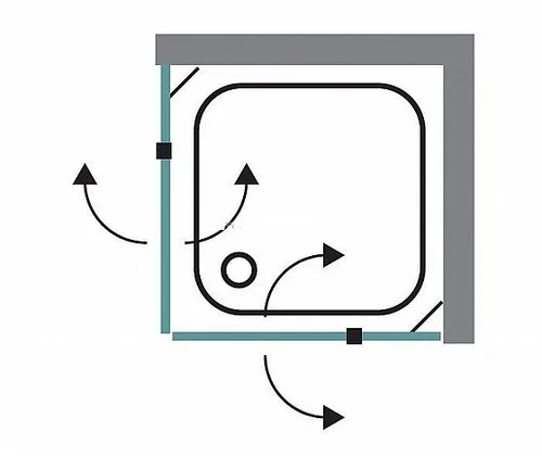 מקלחון פינתי דגם אקסטרים. בעל 2 דלתות על ציר הנפתחות פנימה והחוצה + 2 דפנות קבועות.