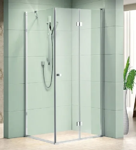 מקלחון פינתי דגם ברונו. דלת הרמוניקה מתקפלת ונצמדת לקיר ודופן אחת קבועה.