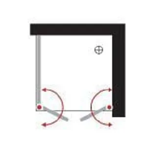 מקלחון פינתי דגם לונדון. בעל 2 דלתות על ציר הנפתחות פנימה והחוצה + דופן אחת קבועה.