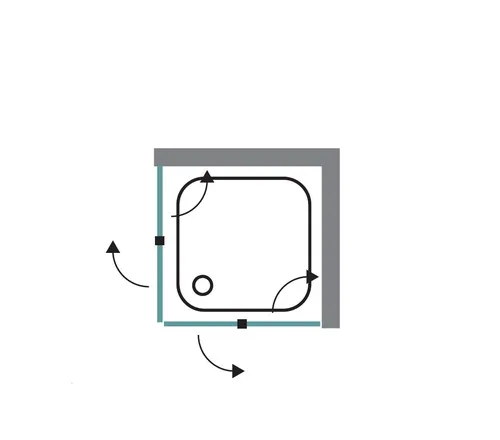 מקלחון פינתי דגם קינגסטון. 2 דלתות הרמוניקה מתקפלות ונצמדות לקיר.