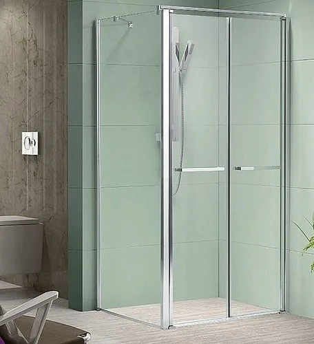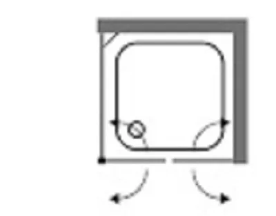 מקלחון פינתי דגם סטוקו. בעל 2 דלתות על ציר הנפתחות פנימה והחוצה + דופן אחת קבועה.