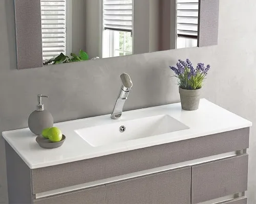 כיור רחצה אינטגרלי סקיני 102X47X19 ס"מ לבן מבריק SKINNY סניטק