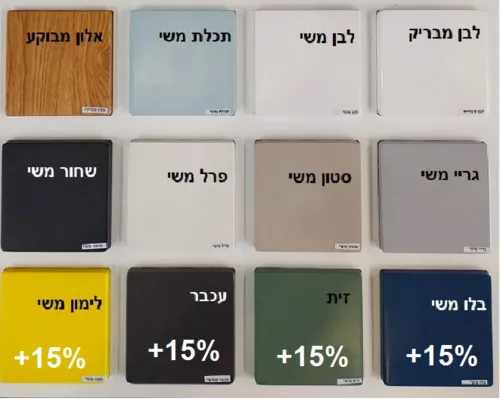 ניתנת במגוון צבעים, ישנה קרטלה של צבעים יש צבעים בתוספת 15%.