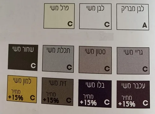 ישנה קרטלה של צבעים. קיימים צבעים בתוספת של 15%.