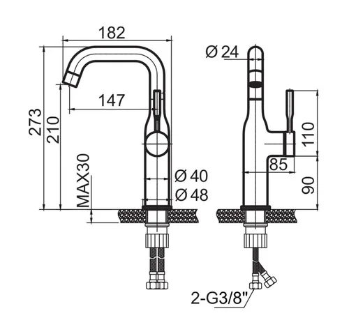 ברז אמבט לכיור רחצה בעל פיה מסתובבת.