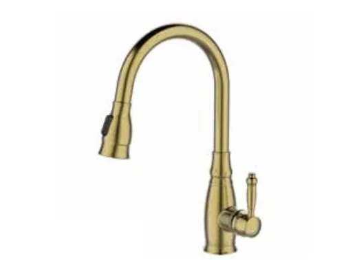 ברז מיקסר גבוה פיה מסתובבת מזלף נשלף דו מצבי זהב מוברש OB0804G סניטק