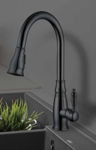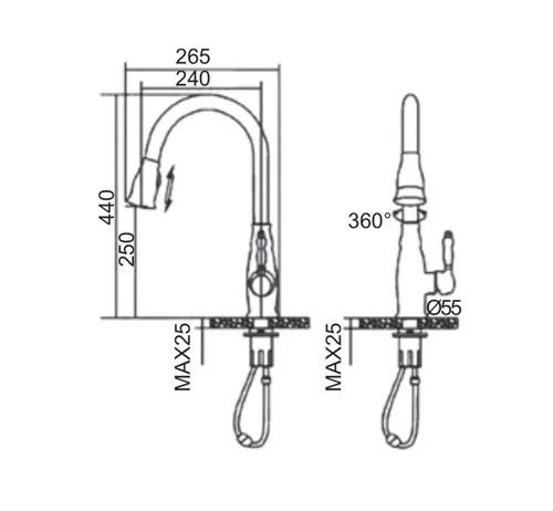 ברז מיקסר גבוה לכיור מטבח בעל פיה מסתובבת ומזלף נשלף בעל שני מצבים.