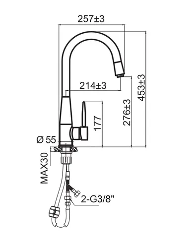 ברז מטבח נשלף בעל מזלף עם מצב זרימה אחד.