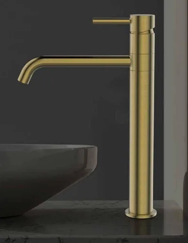 ברז גבוה לכיור רחצה בעל פיה ארוכה מסתובבת.