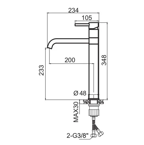 ברז גבוה לכיור רחצה פיה ארוכה מסתובבת ניקל מוברש ZV0446N סניטק
