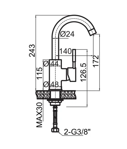 ברז לכיור רחצה בעל פיה מסתובבת.